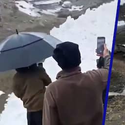 Video | Omwonenden filmen sneeuwmassa die langs Turks dorp stroomt